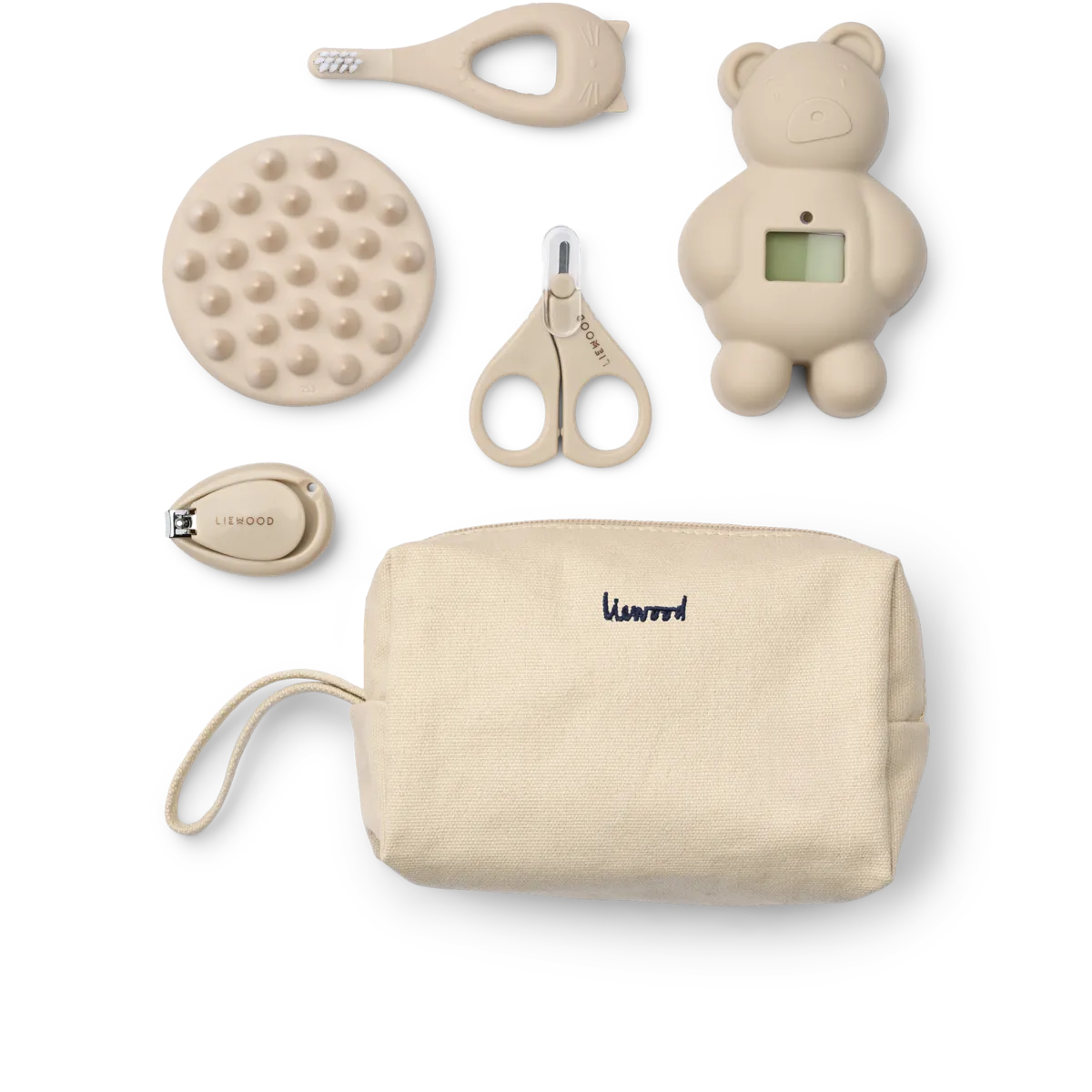 Komplekti kuulub JANELLE hambahari pehme silikoonist käepidemega, mis toimib ühtlasi närimisleluna, ning õrnade nailonharjastega. Lisaks on kaasas küünehoolduskomplekt – õrnad küünetangid ja ümarate servadega käärid –, silikoonist massaažihari, mis aitab peanahka stimuleerida ja juuksekasvu toetada, ning populaarne KIERA vannitermomeeter hubaseks vanniajaks. Ujuv digitaalne termomeeter jälgib vannivee temperatuuri, et see oleks alati beebile sobiv.